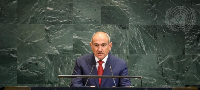Премьер-министр Армении Никол Пашинян выступает на общих дебатах Генассамблеи ООН. Никол Пашинян в ООН: Вашингтонская декларация открыла путь к миру между Арменией и Азербайджаном ООН